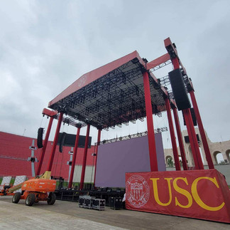 Stage-Tech supplied multiple fully branded structures, rigging and a 50' x 30' LED wall for the "USC 2021 commencement" at the LA Memorial coliseum. Stage-Tech was tasked with designing the rig in a short period of time including a full engineering report with HWAP for the event producer. The crew and production team followed a strict Covid compliant protocol and executed the game plan on time and on budget. A big thank you to the innovative team for finding a way to help share this important event to Graduates and family during the pandemic!